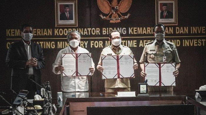 Adapun Menteri Koordinator Bidang kemaritiman dan Investasi Luhut Binsar Pandjaitan turut menyaksikan penandatanganan itu, Senin (3/1/2022).