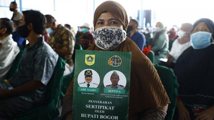 TRIBUNNEWSDEPOK.COM, CIBUNGBULANG - Bupati Bogor Ade Yasin menyerahkan 173 penerima bidang sertipikat hak atas tanah kepada warga Kabupaten Bogor pada Kamis (3/2/2022).