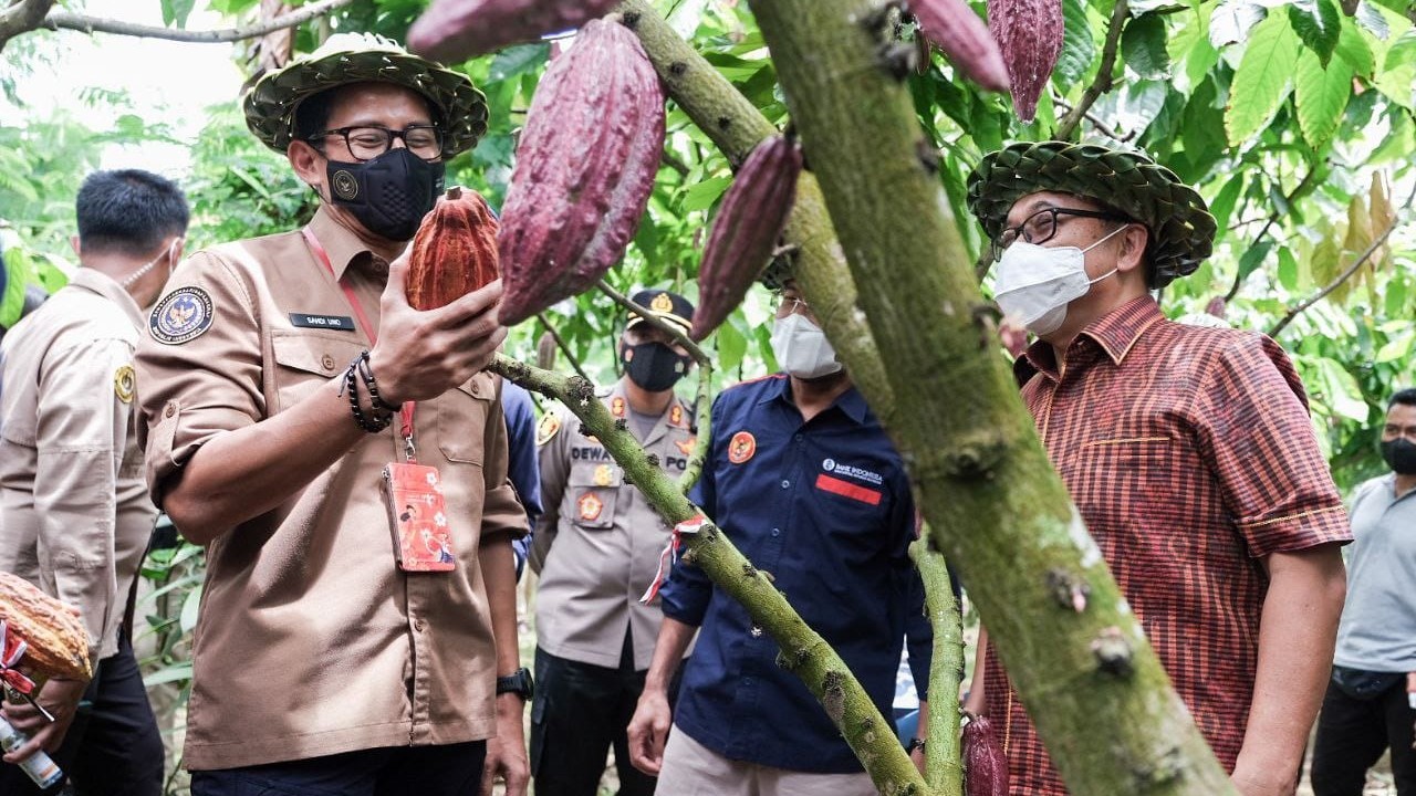 TRIBUNNEWSDEPOK.COM, JAKARTA - Bangkitkan ekonomi dan membuka lapangan kerja seluas-luasnya, Menteri Pariwisata dan Ekonomi Kreatif (Menparekraf) Republik Indonesia, Sandiaga Salahuddin Uno akan mengkurasi produk olahan coklat asal Jembrana, Bali.