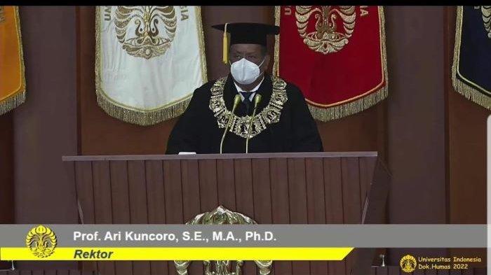 Upacara wisuda virtual ini dipimpin oleh Rektor Universitas Indonesia (UI) Prof. Ari Kuncoro, S.E, M.A, Ph.D.