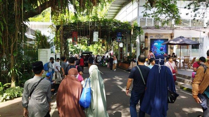 TRIBUNNEWSDEPOK.COM, BOGOR - Memasuki H+1 Lebaran, kepadatan nampak di pintu masuk Kebun Raya Bogor, Bogor, Jawa Barat pada Selasa (3/5/2022).
