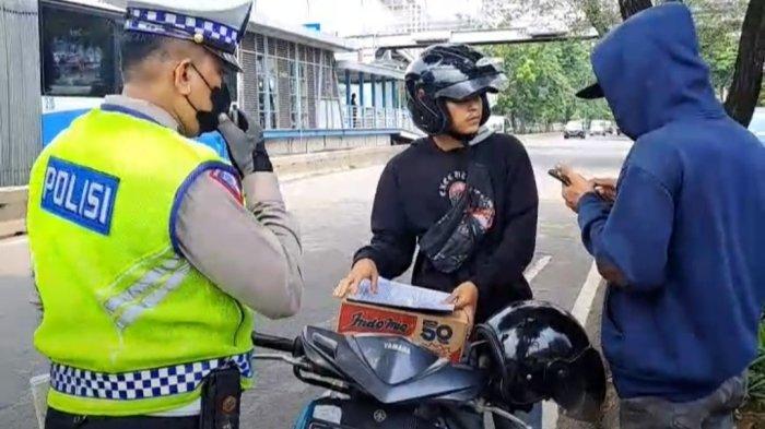 Beberapa dihentikan karena tidak memakai helm, berboncengan lebih dari satu orang, melawan arus, dan masuk ke jalur cepat.