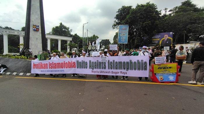 TRIBUNNEWSDEPOK.COM, BOGOR - Masyarakat Kota Bogor yang mengatasnamakan Majelis Ukhuwah Bogor Raya menggelar aksi Bela Islam di Halaman Tugu Kujang, Bogor Tengah, Kota Bogor, Jawa Barat, Jumat (27/1/2023).