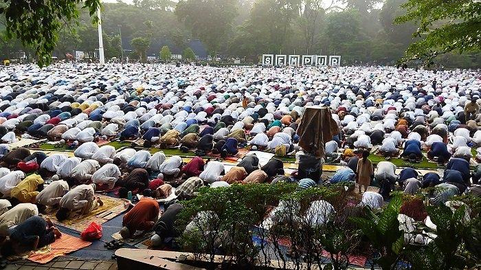 TRIBUNNEWSDEPOK.COM, BOGOR- Ribuan warga Muhammadiyah yang hadir melaksanakan salat Idul Fitri dalam rangka menyambut kemenangan bulan suci Ramadan, seketika merubah lapangan Sempur, Bogor Tengah, Kota Bogor, Jawa Barat menjadi lautan manusia berwarna putih.