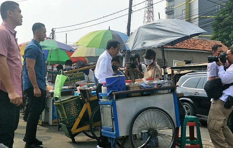 Warga yang sebelumnya berdiri di sisi Jalan Menteng Pulo untuk melihat kepala negara, langsung berlari dan membuat barisan di depan pasar.