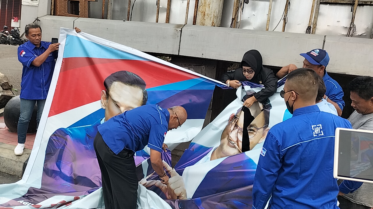 TRIBUNNEWSDEPOK.COM, SUKMAJAYA - Sejumlah kader di Dewan Pimpinan Cabang (DPC) Partai Demokrat Kota Depok mencopot baliho Anies Baswedan yang bersanding dengan Agus Harimurti Yudhoyono (AHY).