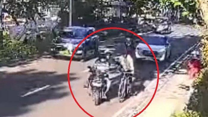 Tampak dalam video, korban yang berada di bahu jalan sebelah kiri dipepet dua orang bermotor.