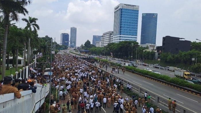 Aksi Unjuk Rasa APDESI di Depan Gedung DPR RI Kian Memanas, Tutup Jalan Tol Dalam Kota