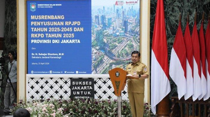 Hal itu diungkapkan Suhajar saat Musyawarah Perencanaan Pembangunan (Musrenbang) Rencana Kerja Pemerintah Daerah (RKPD) DKI Jakarta Tahun 2025 dan Rencana Pembangunan Jangka Panjang Daerah (RPJPD) Provinsi DKI Jakarta Tahun 2025-2045 di Balai Agung Provinsi DKI Jakarta, Selasa (23/4/2024).